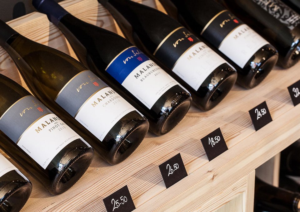 The Valentin Vinoteca offers a large selection of about 1'000 wines. You have the option of having your wine selected in the vinoteca delivered to the restaurant for dinner. For this you pay the retail price in the vinoteca and a service fee.